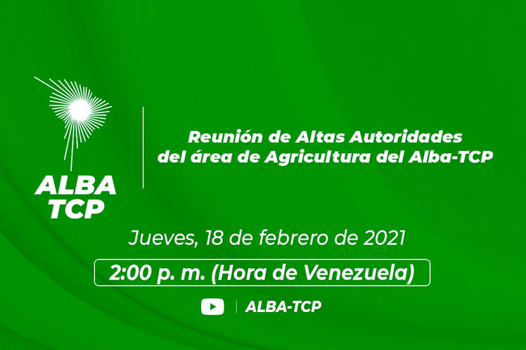 ‘Altas autoridades del área de agricultura sostendrán un encuentro telemático con el objetivo de trazar estrategias conjuntas para garantizar la alimentación y las capacidades productivas de los pueblos del ALBA’, precisó el bloque integracionista en la red social Twitter.