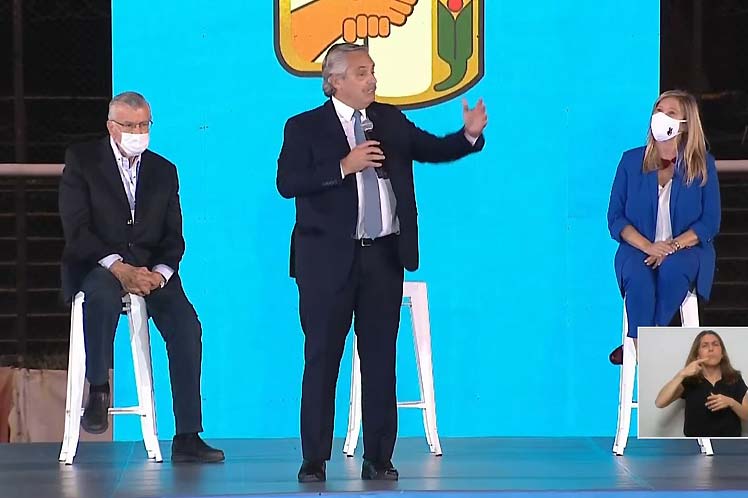 En otro momento hizo referencia a la Argentina que heredó, ‘muy dañada, en terapia intensiva y terminó contagiandose también de Covid-19’. Ante tanta desgracia nos dimos cuenta que divididos los sinvergüenzas se hacían de poder en desmedro de los que más necesitan, agregó.