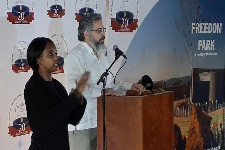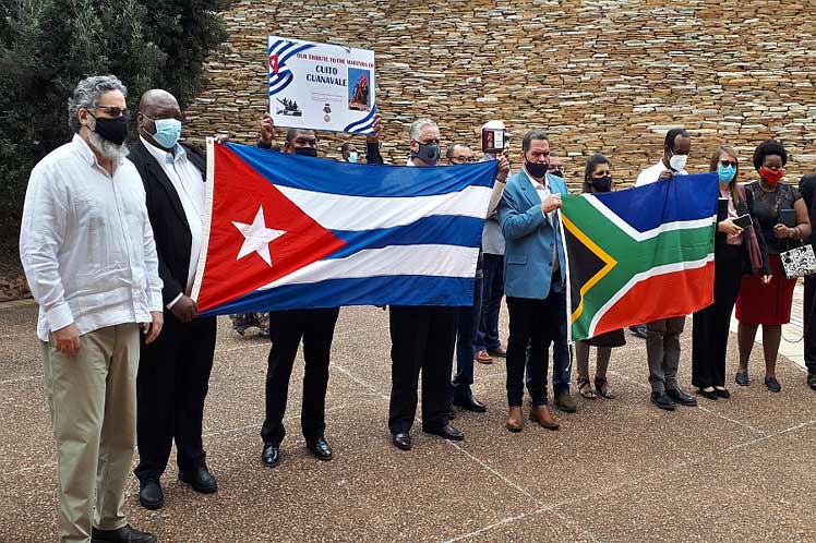 Los asistentes depositaron ofrendas florales en el museo histórico Freedom Park, donde se honra permanentemente, con sus nombres grabados en piedra, la memoria de los dos mil 289 combatientes internacionalistas cubanos que ofrendaron sus vidas en las batallas por la liberación de África.