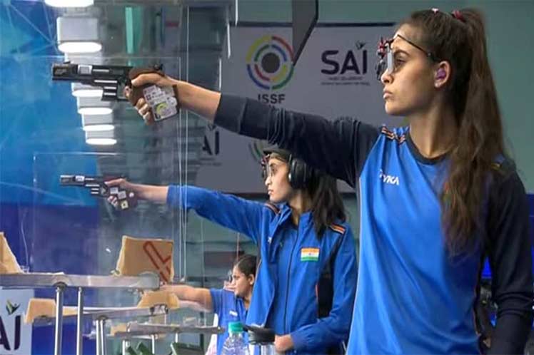 Bhaker, de 19 años, disparó para 28 puntos y se conformó con la medalla de bronce del evento y así completar el perfecto uno, dos y tres de la India.