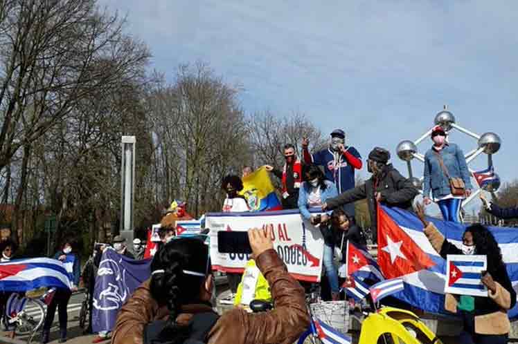 Organizaciones como Cubanismo.be y los Amigos de Cuba en Bélgica se sumaron a la caravana, que incluyó llamados a la solidaridad y demandas de retirar a la isla de la unilateral lista de Washington de países patrocinadores del terrorismo y de la devolución del territorio ocupado por la base naval estadounidense en Guantánamo.