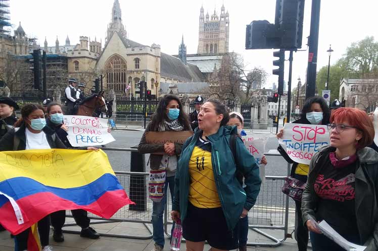 De su lado, una joven que se identificó con el nombre de Diana, afirmó que el Reino Unido y el resto de la comunidad internacional deben presionar al gobierno colombiano para que deje de reprimir a los manifestantes.