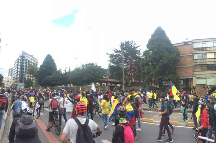 Bogotá, 15 may (Prensa Latina) Camioneros, maestros, mujeres, campesinos, indígenas, jóvenes, obreros, intelectuales y muchos otros sectores protestan hoy contra el gobierno de Iván Duque, en los más diversos puntos de la geografía de Colombia.
