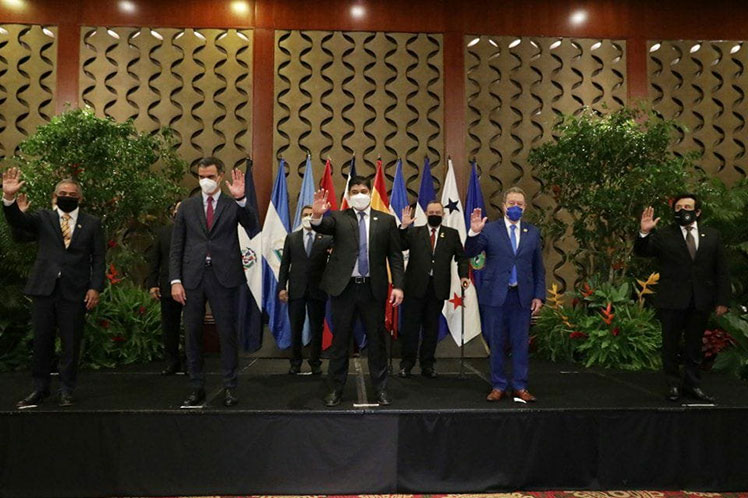 Participaron en la Cumbre SICA-España el primer ministro de Belice, John Briceño; los presidentes de Costa Rica, Carlos Alvarado, del gobierno de España, Pedro Sánchez; Guatemala, Alejandro Giammattei; y Honduras, Juan Orlando Hernández, entre otros funcionarios.