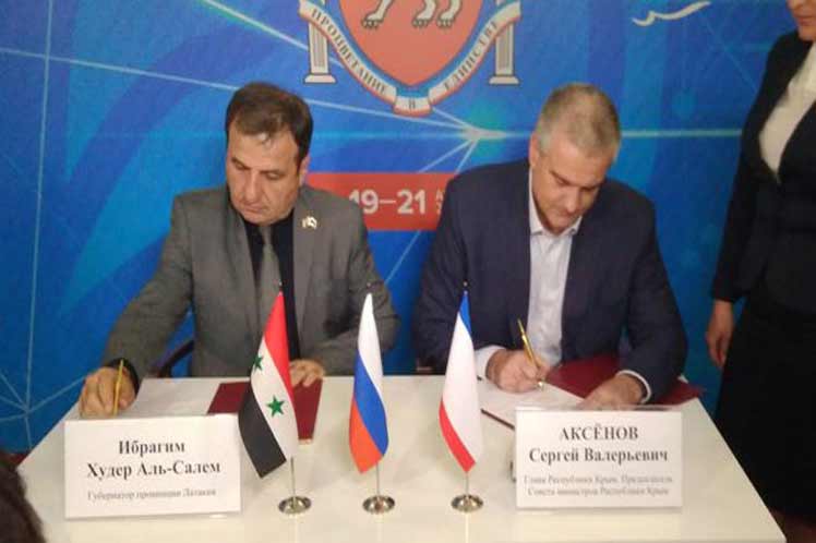 Una vez más, Prensa Latina tuvo la oportunidad de presenciar la firma de acuerdos para un intercambio de mercancías entre los puertos sirios y los de Crimea, lo cual se vio como importante aporte a la reconstrucción del país levantino.