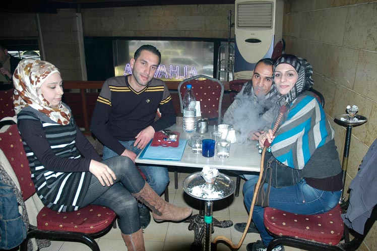 A lo largo de la avenida al-Mezzeh, como en otras zonas del centro, el noroeste y oeste de la ciudad han florecido los cafés, algunos de gran glamour, donde fumar “nargire”, típica pipa árabe con su picadura de frutas, es una pasión para comensales de los dos sexos, aunque algunos de estos sitios son solo para hombres.