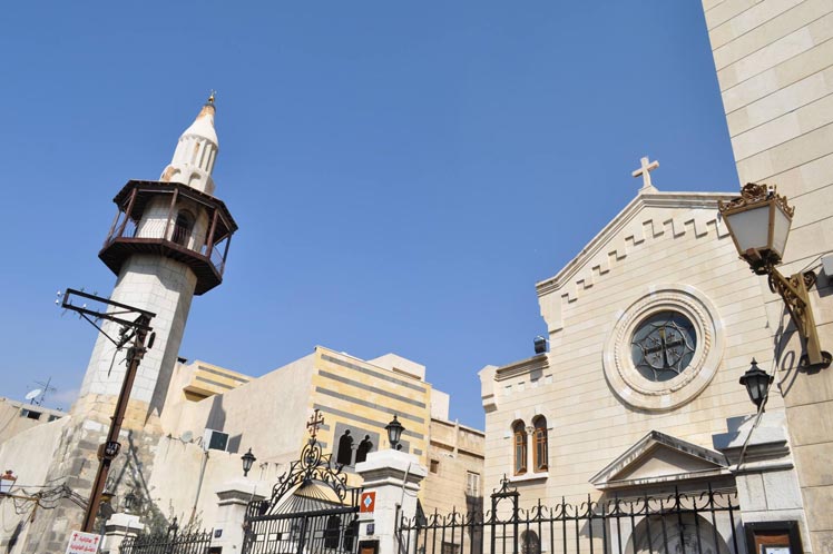 Damasco es un gran mosaico de costumbres y religiones en las que se entrelazan las manifestaciones cristianas, la mayoría iglesias ortodoxas, con las diferentes escuelas en las que se dividió el islam, sunita, shiita, alauita y en menor grado drusos; y todavía está en pie lo que fue el antiguo barrio judío.