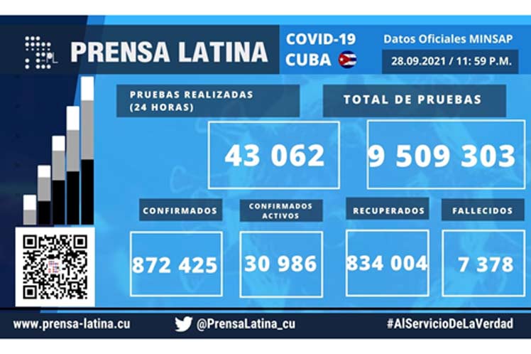 La nación caribeña llega así a los 872 mil 425 diagnosticados con ese coronavirus desde el 11 de marzo de 2020 y siete mil 378 víctimas fatales.