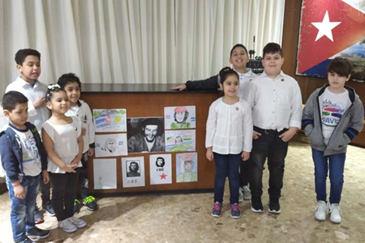Allí, los pioneros cubanos rindieron homenaje al guerrillero heroico con poesías, canciones y también la apertura de una exposición con dibujos de sus interpretaciones sobre el Che, donde en muchos de ellos reflejan los profundos lazos de amistad y amor entre Cuba y Argentina.