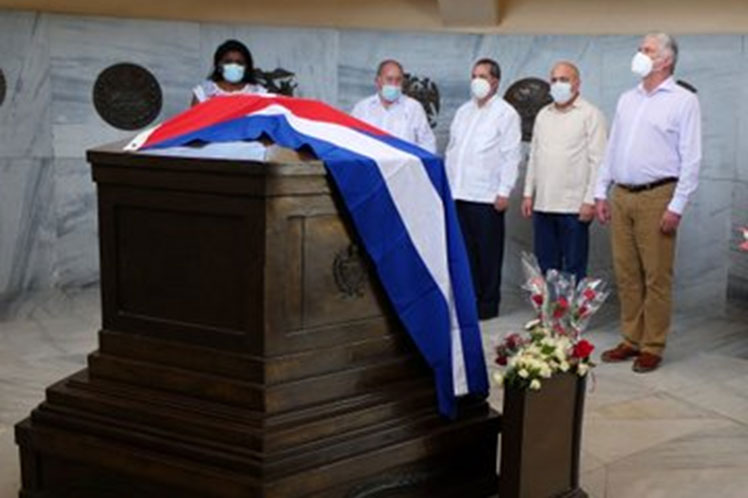 De acuerdo con la cuenta en Twitter de la Presidencia de la República, la reverencia de esta tarde se trata del regreso, una vez más, del presidente cubano al sitio sagrado donde reposan adalides de las gestas libertarias cubanas.