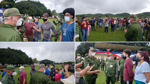 Según la cuenta en Twitter de la Presidencia, al mandatario lo acompañaron jóvenes de las universidades de las Ciencias Informáticas y la Tecnológica de La Habana José Antonio Echeverría, en la Gran Unidad de la Gloria Combativa Rescate de Sanguily, correspondiente a la división de tanques.