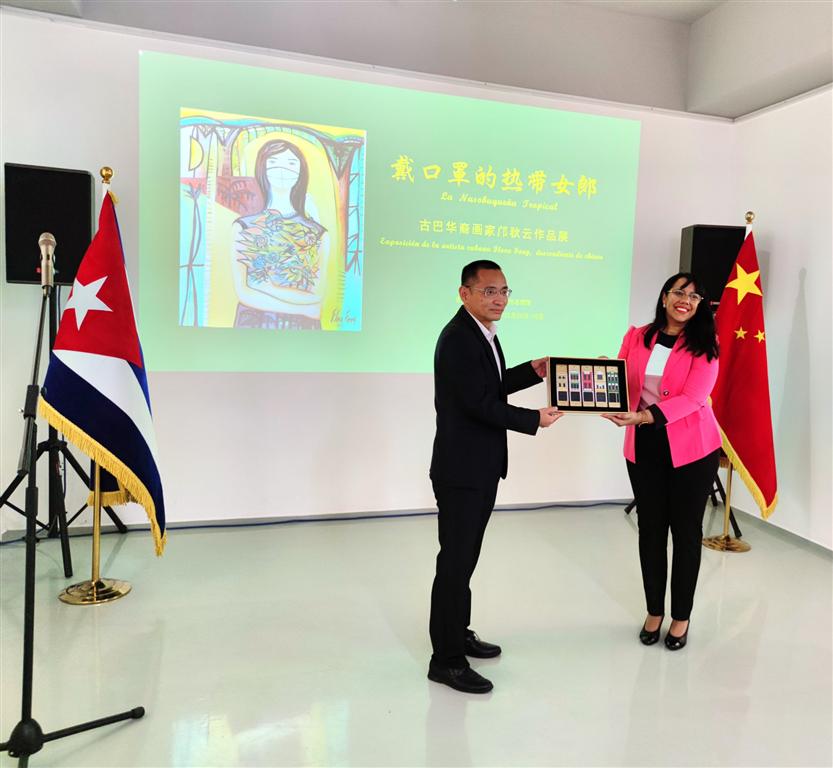 La ceremonia de apertura en el Museo de Arte de Lingnan Yang Shanshen en Taishan reunió a la cónsul cubana en Guangzhou, Denisse Llamos, con autoridades gubernamentales, de la cultura, artistas, amigos de Cuba e incluso un primo de Fong.