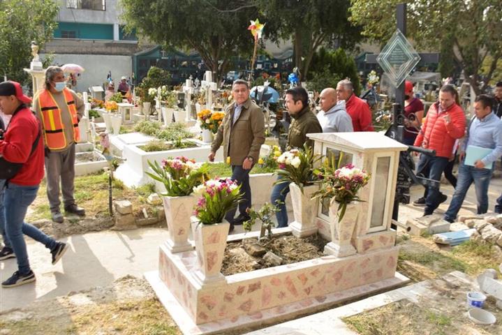 Ya hoy lunes se ve el ajetreo de las personas mientras albañiles y marmoleros, junto a sepultureros, preparan el exterior de la tumba, lo cual se repite en todos los camposantos del país.