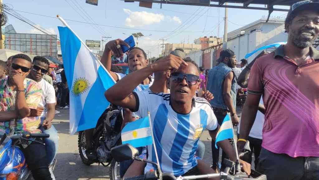 Una improvisada movilización reunió a cientos de hinchas en las calles de Puerto Príncipe a grito de “Ajantin Chanpyon” (Argentina Campeón), que por momentos dejó atrás la vieja rencilla con Brasil, los dos grandes de Sudamérica.