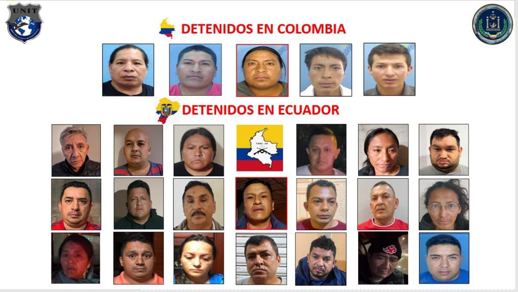 Durante una rueda de prensa, el ministro del Interior, Juan Zapata, detalló que las 19 personas detenidas formaban parte de un grupo delincuencial que abastecía a grupos armados de la nación vecina y a organizaciones delictivas en Ecuador.