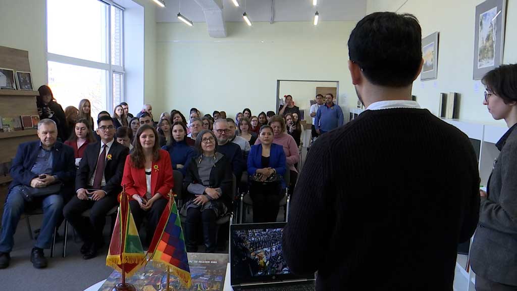 La inauguración de la exposición de más de una veintena de pinturas de Siñañi resultó ser la puerta a un coloquio organizado por la embajada del Estado Plurinacional de Bolivia en Rusia con el cual buscan acercar a rusos y latinoamericanos a las peculiaridades de esta nación.