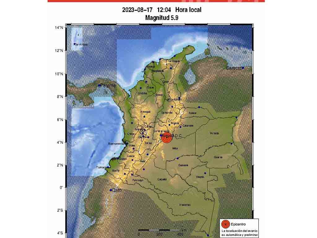 Según el reporte inicial del Servicio Geológico Colombiano, el epicentro fue en Meta, específicamente en El Calvario, a una profundidad menor de 30 kilómetros y con una magnitud estimada en 6.1 en la escala de Richter.